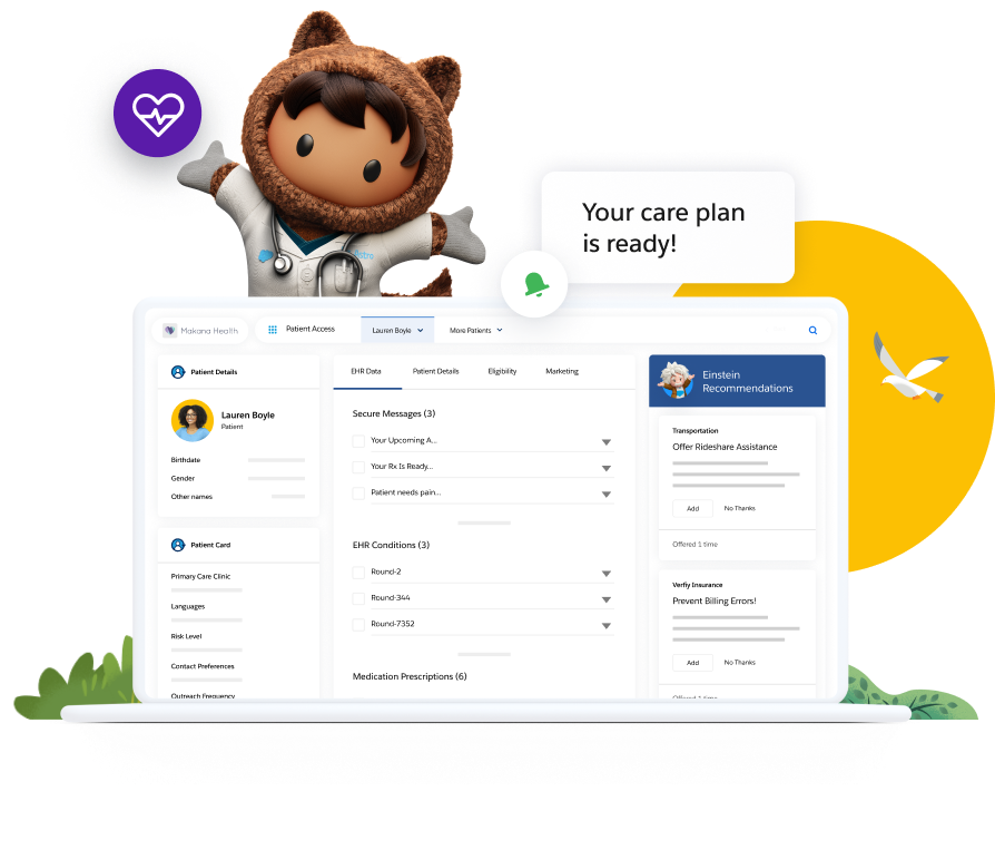 Salesforce Health Cloud is a patient-first CRM platform that helps healthcare organizations streamline operations, coordinate care, and deliver more personalized experiences. With features like Patient 360, Intelligent Scheduling, and Integrated Care Management, it enables teams to collaborate efficiently, identify risks early, and improve health outcomes.